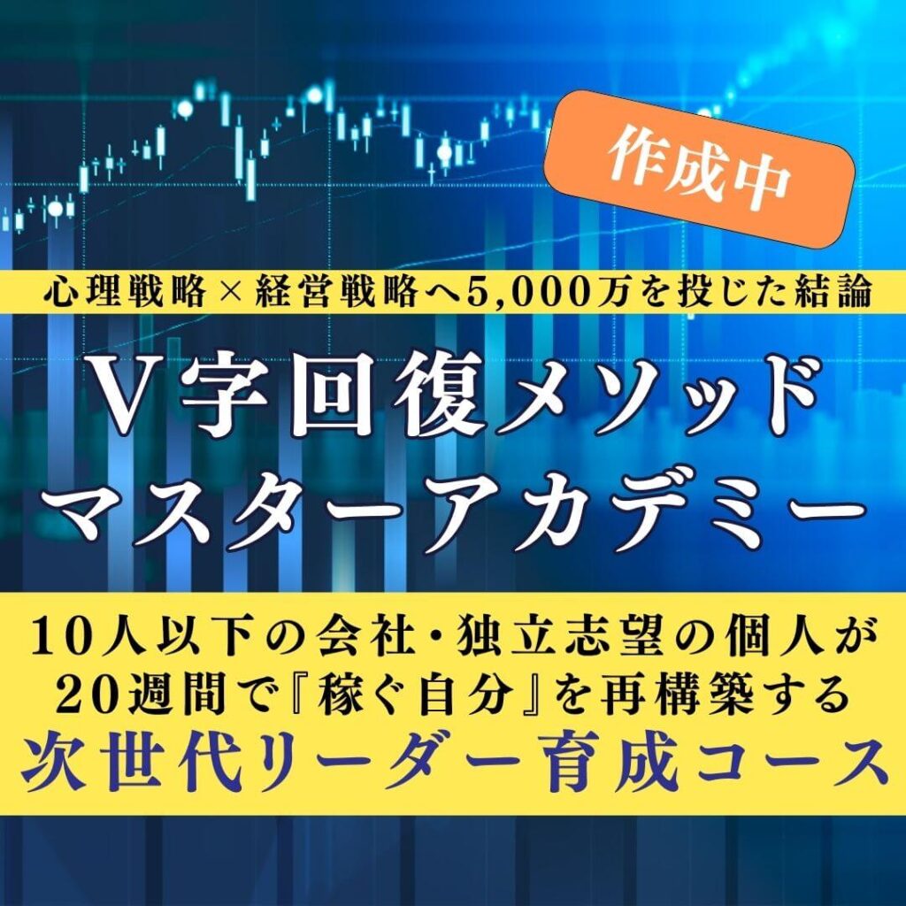 私が提唱する「V字回復メソッド」は、経営課題を【心理・工程・資金】の3つに分解し、最も効率的なルートで収益を最大化させる実践型プログラムです。